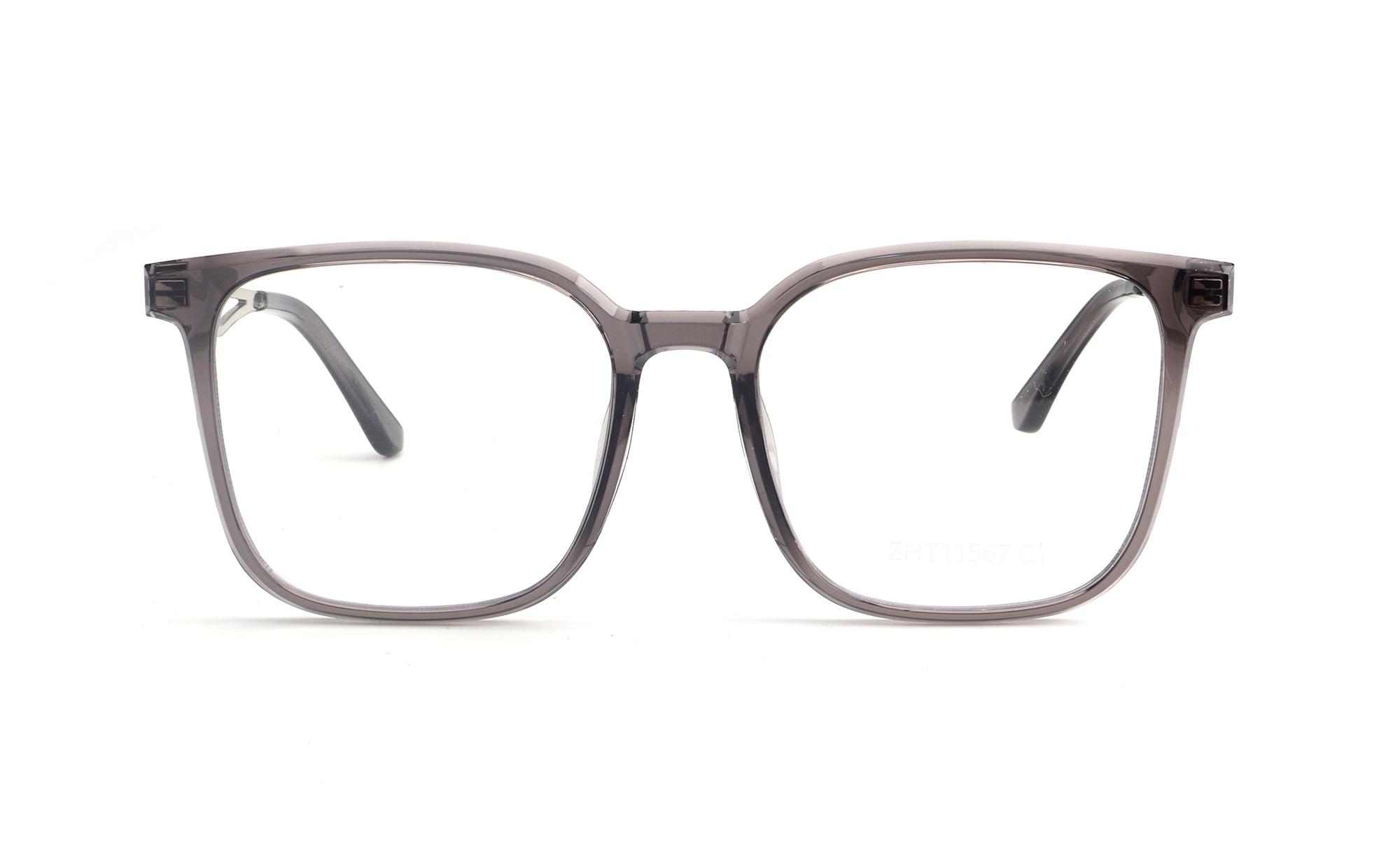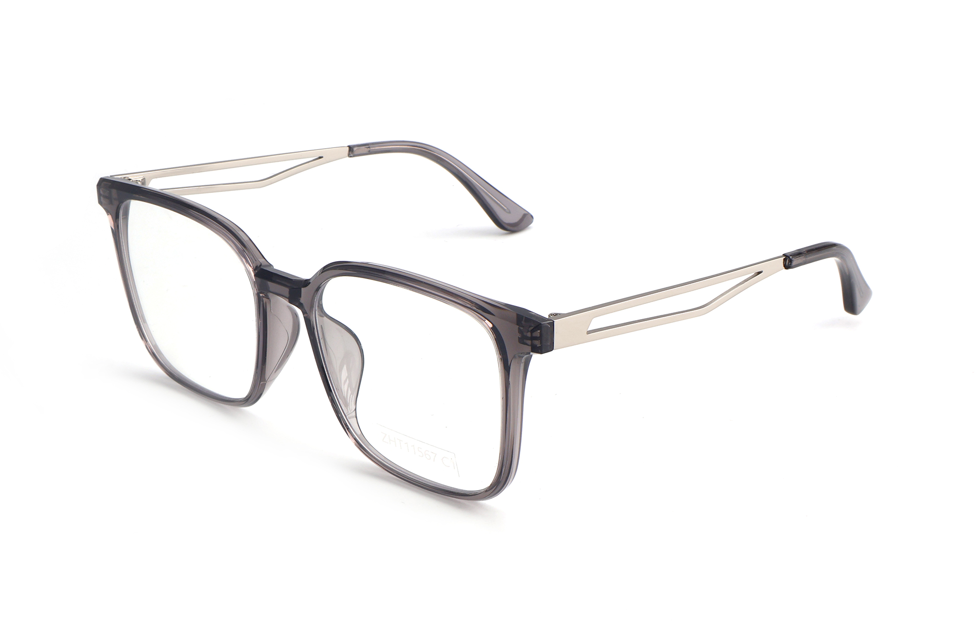 Upgrade your professional look with Zhantai Glasses model ZHT11567. These square eyeglasses frames for men feature a premium mixed material construction, combining a sleek transparent grey TR90 front with high-grade hollow-out metal temples.